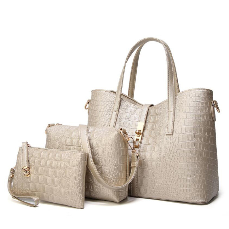 - STRUCTURE: Top zipper closure. The Largest Handbag & Middle Size Shoulder Bag: 1 main compartment, 1 zipper pocket and 2 slot pockets. The largest handbag is big enough for your daily items such as tablet computer, wallet, cosmetics, moible phone and keep them organized. The small wallet can be used as an extra pocket. Better not to put too many heavy things inside the bag to avoid the straps broken.