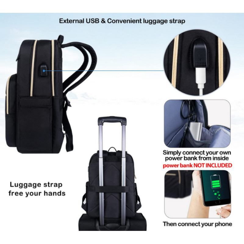 •The laptop bag is equipped with a built-in USB charging port, easy to charge your phone when on-the-go (Not includes the power bank).